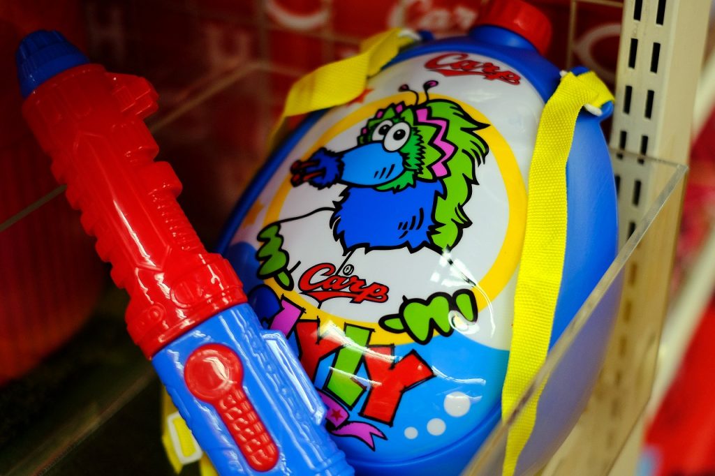 カープコラボグッズに新商品「リュックタイプ水鉄砲」登場!カープ坊やとスラィリーの2種類