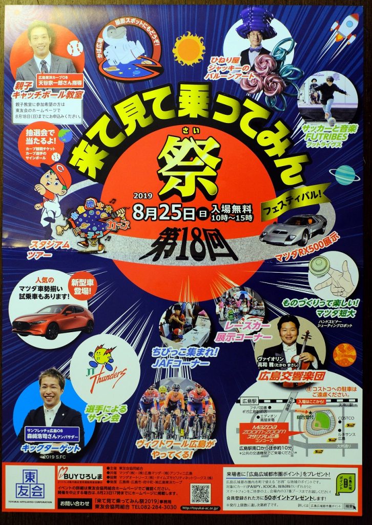 8/25(日)マツダスタジアムで「来て見て乗ってみん祭2019」開催!カープOB天谷さんも来場