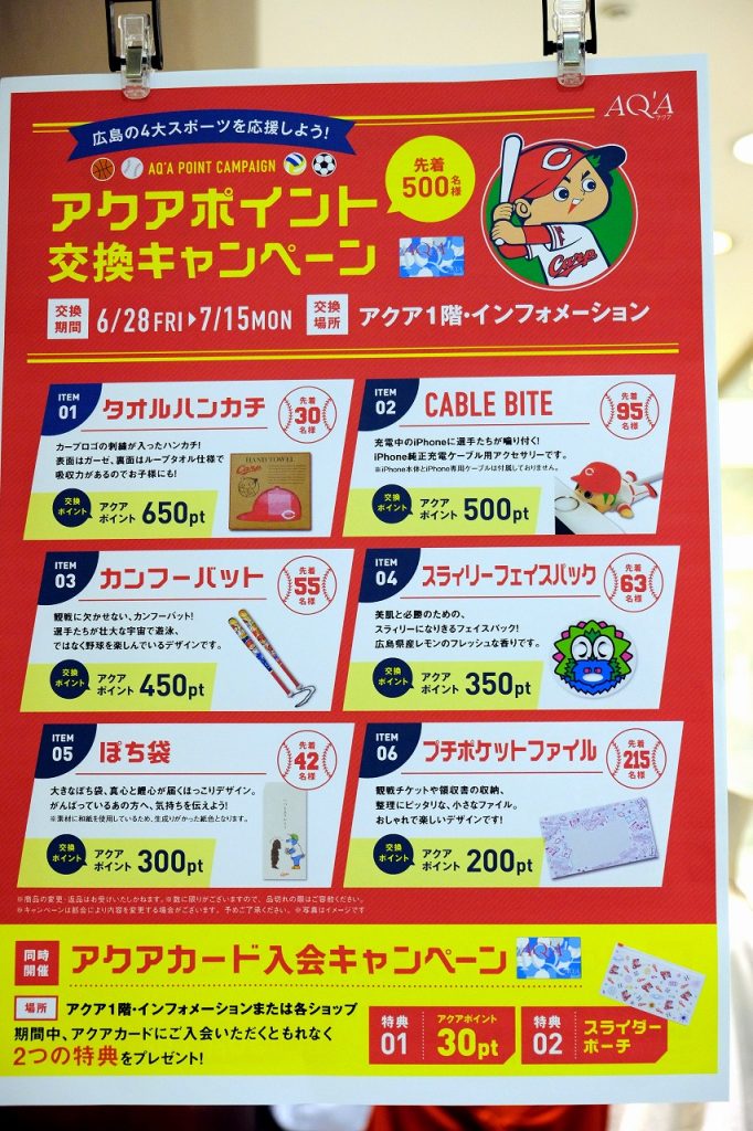 アクア広島センター街で本日6/28(金)~「アクアポイント交換キャンペーン ~広島東洋カープ~」開催!