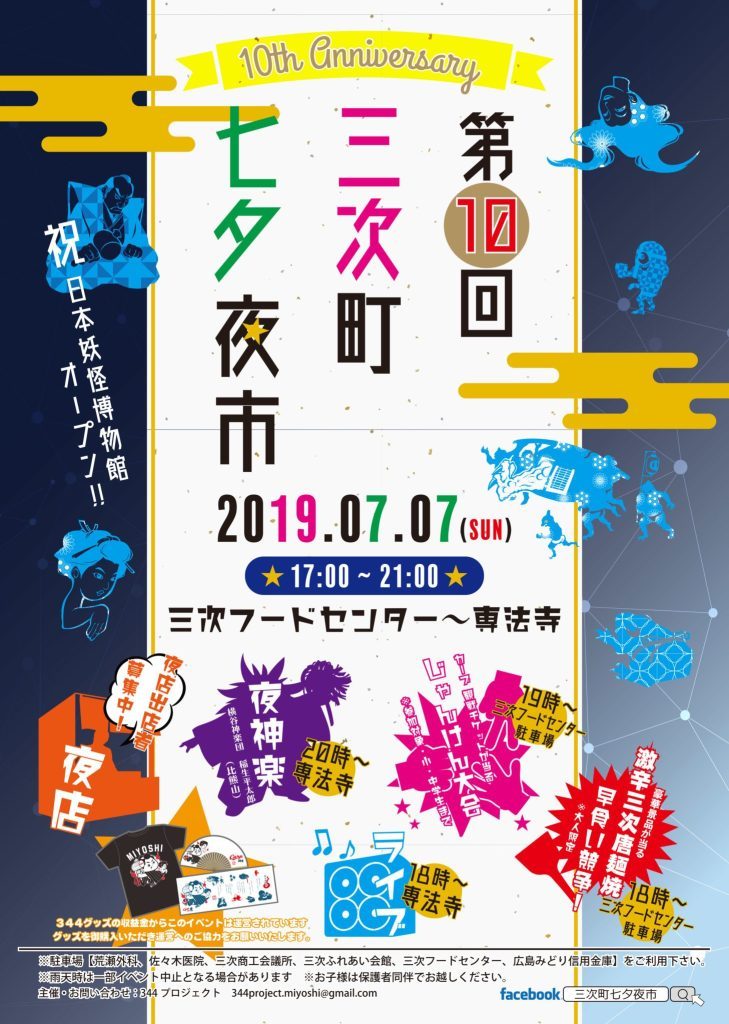 広島県三次市三次町にある「三次フードセンター」から「専法寺」で、7月7日(日)に「三次町七夕夜市」が開催されます。今年で10年目となるお祭りで、夜店や夜神楽、じ…