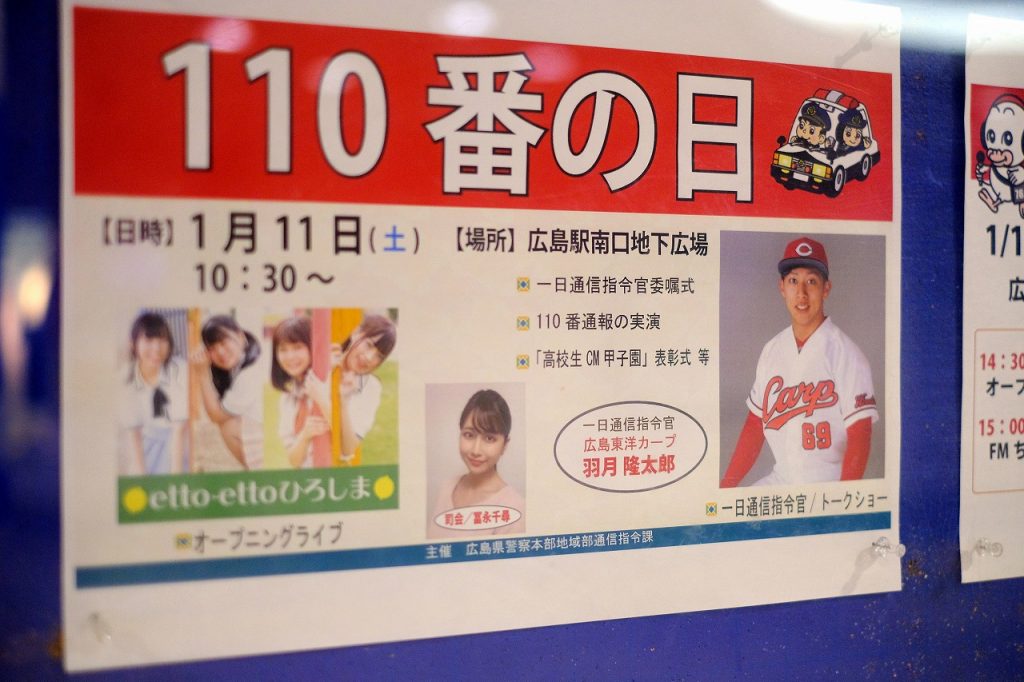 1/11(土)広島駅南口地下で「110番の日」開催!今回はカープ羽月選手が1日通信司令官に