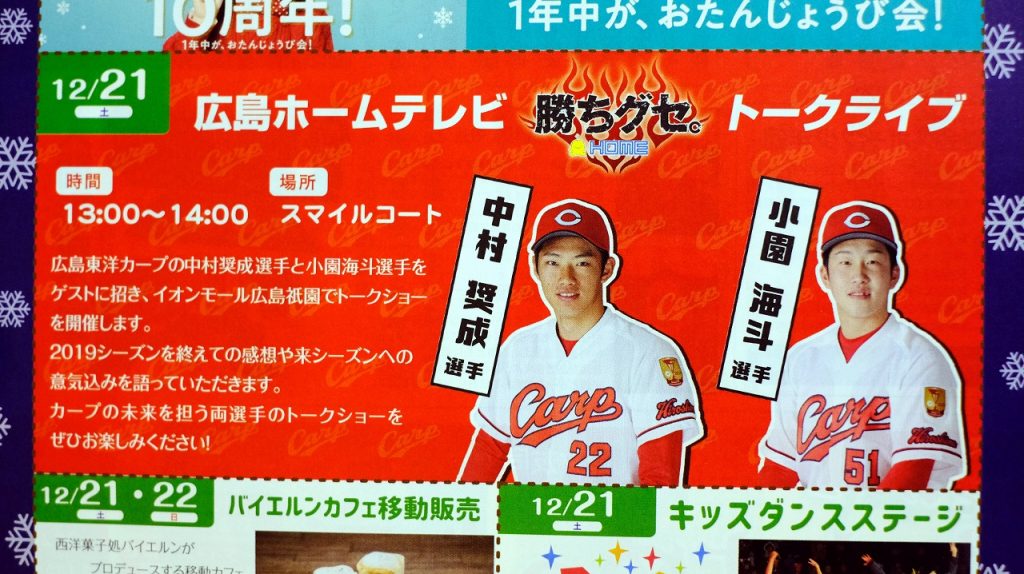 イオンモール広島祇園で12/21(土)に中村奨成・小園海斗選手出演「広島ホームテレビ 勝ちグセ。トークライブ」開催!