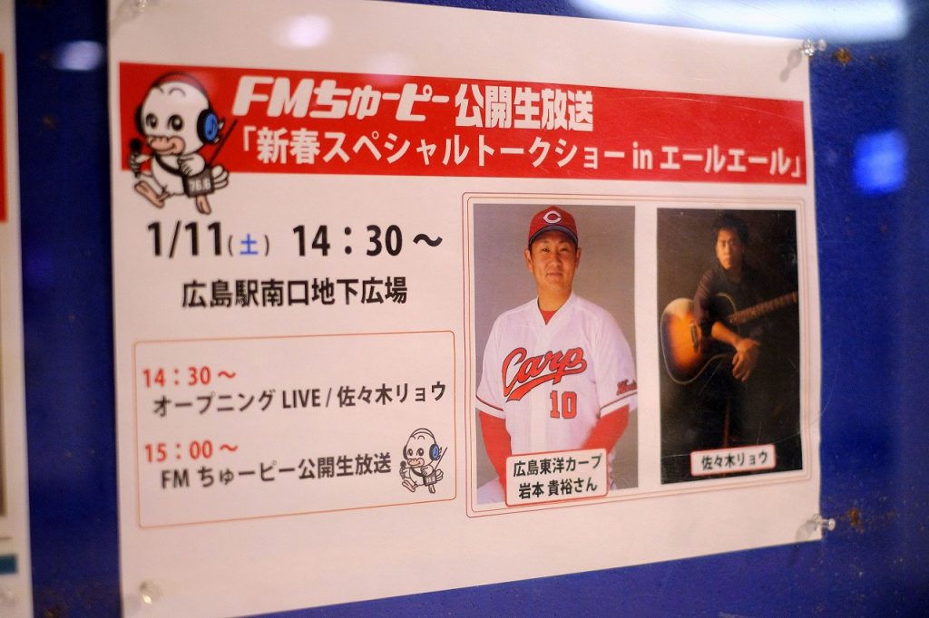 広島駅南口地下広場で1/11(土)にFMちゅーピー公開生放送!ゲストはカープ岩本貴裕さん