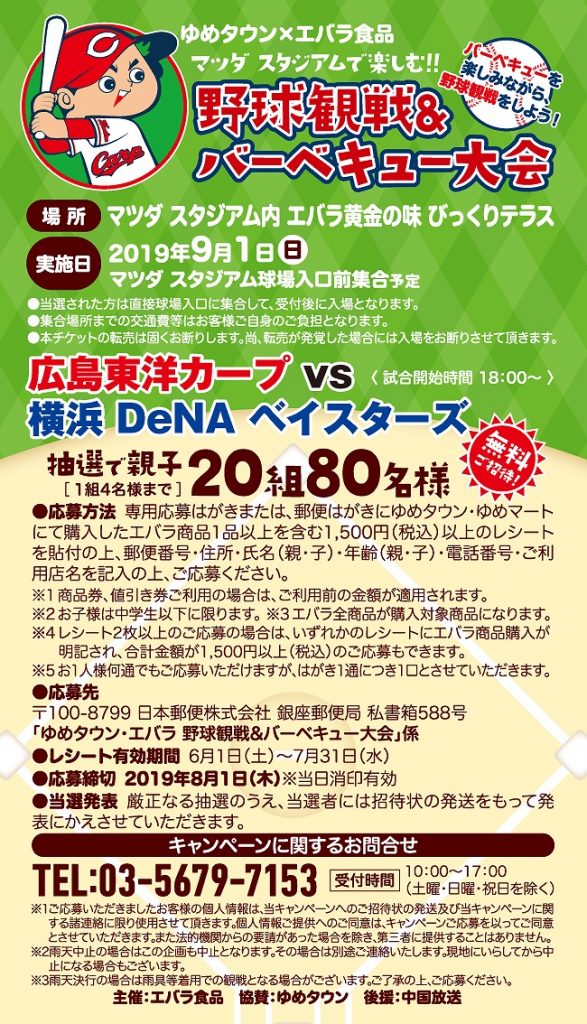びっくりテラス観戦チケットが当たる!ゆめタウンで「野球観戦&バーベキュー大会」キャンペーン実施中