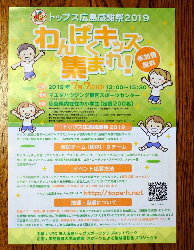 7/7(日)開催「トップス広島感謝祭2019」の参加者募集中!当日はスラィリーも応援に