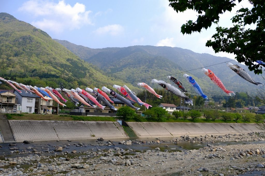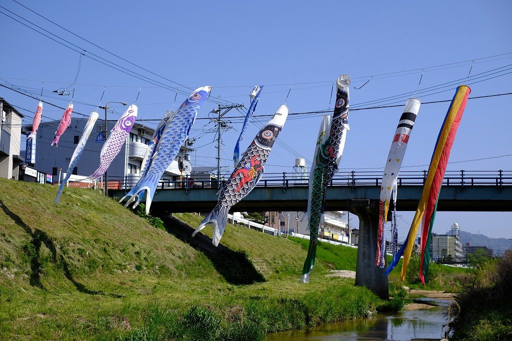 安佐北区白木街道沿いの三篠川にかかる鯉のぼりも見事です!