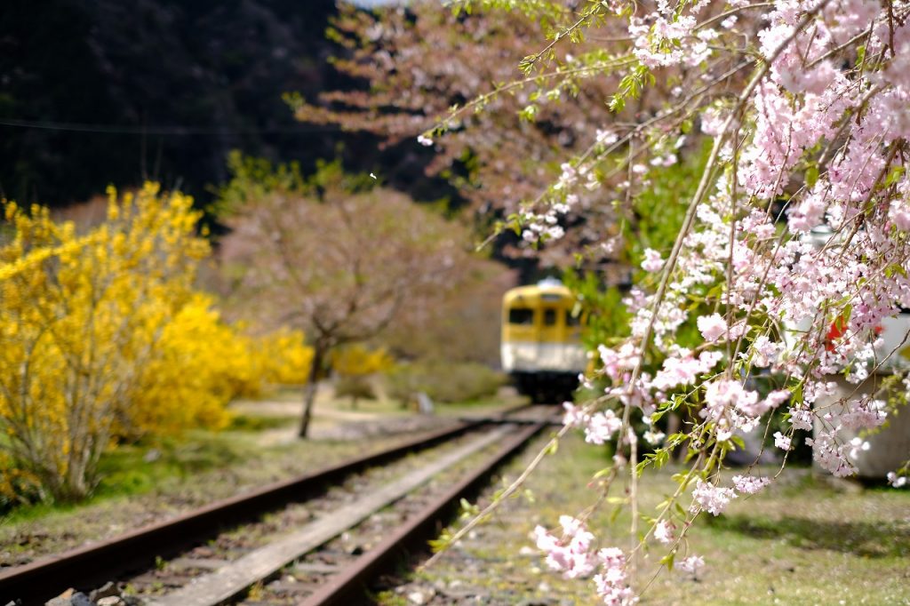 花と列車が楽しめる「安野花の駅公園」!桜の時期は過ぎましたが素敵な場所です