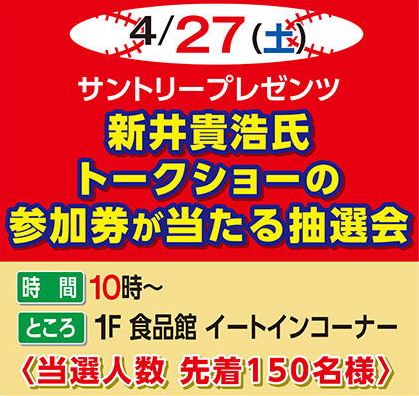 カープOB新井さんのトークショー参加券が当たる抽選会が4/27(土)ゆめタウン廿日市・広島で!
