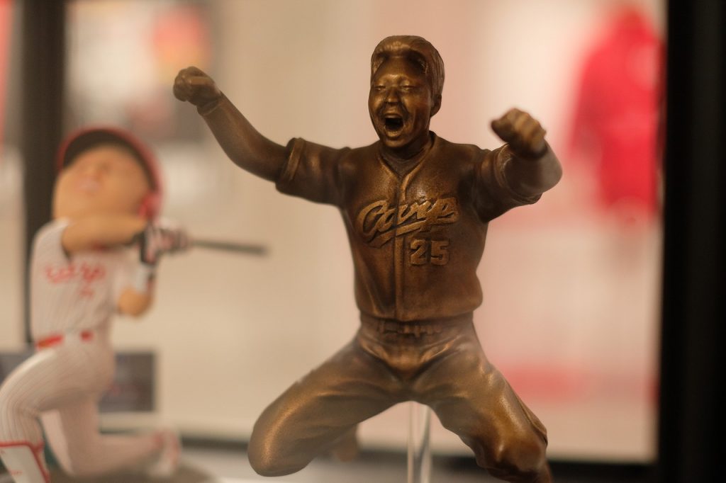 引退セレモニーで贈呈された「新井貴浩 大三振人形」と「新井貴浩 大飛躍銅像」パルコで展示中!