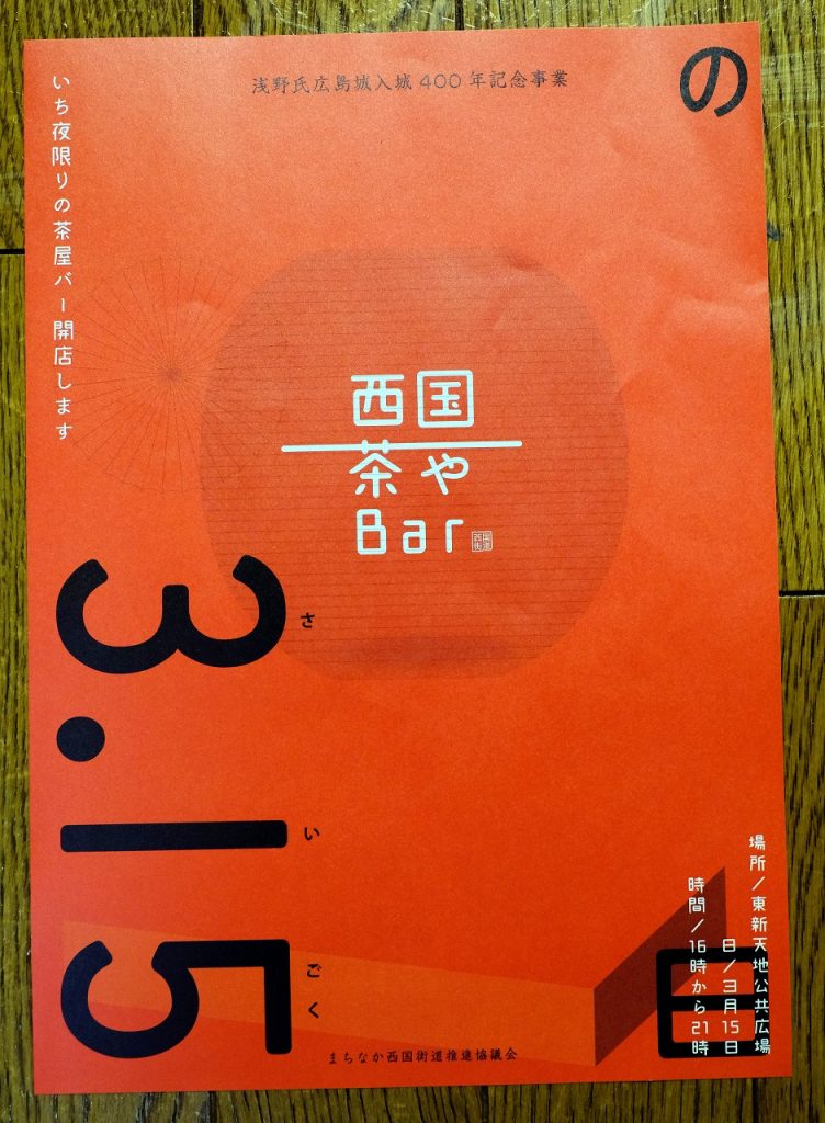 新天地公園に一日限りの「茶やBar」開店!本日3/15(金)は「西国の日」