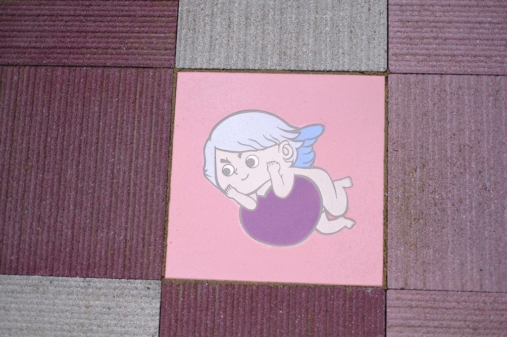 マツダスタジアムすぐ隣にある「ララシャンスHIROSHIMA迎賓館」の前にある歩道のタイルに「天使!?キューピッド!?の(カープ)坊やさん!?」が描かれていると…