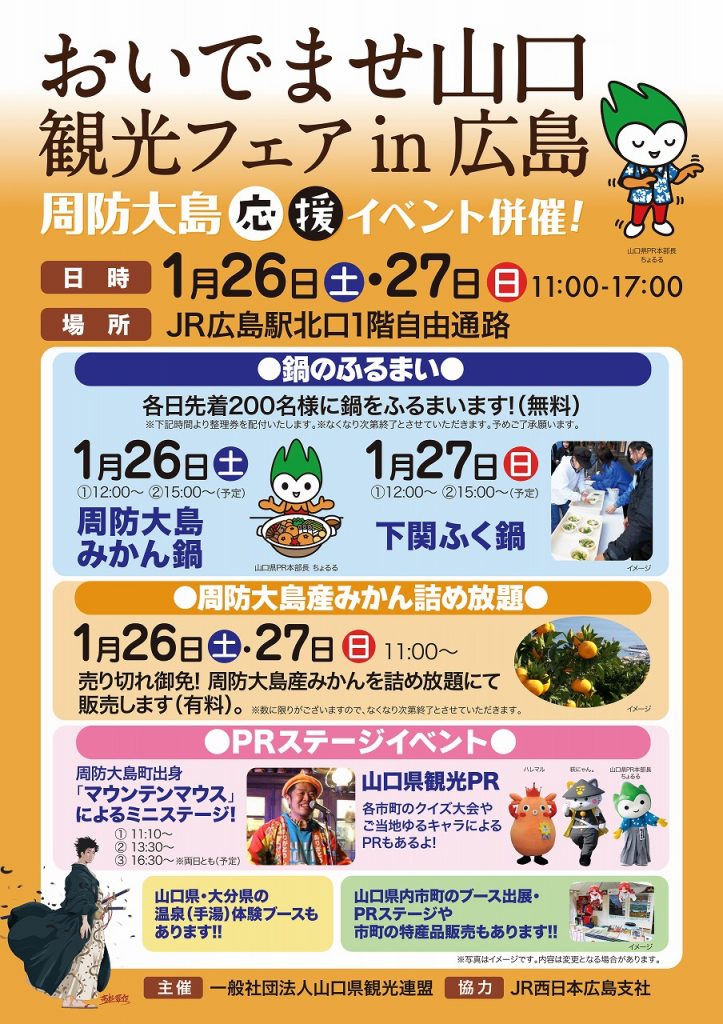 広島駅北口で1/26(土)・27(日)の2日間「おいでませ山口観光フェアin 広島」開催!
