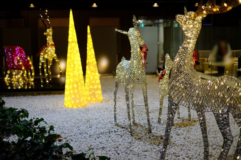 ANAクラウンプラザホテルでクリスマスイルミネーション開始!庭園にはかわいいトナカイも
