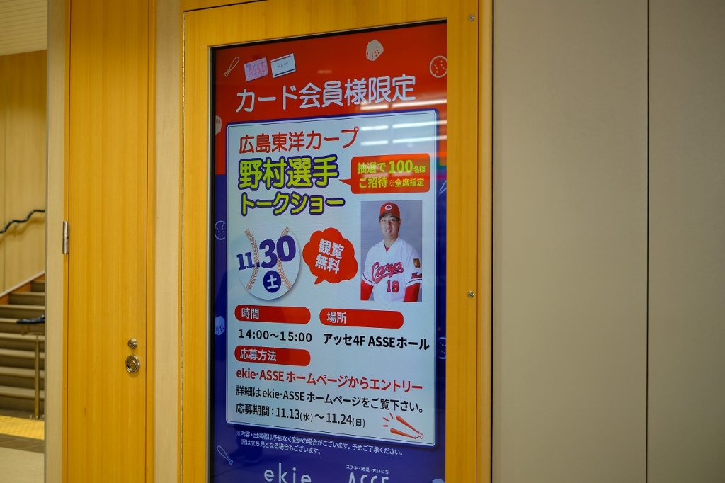 ひろしま駅ビル ASSEで11/30(土)にカープ野村投手のトークショー開催!応募は11/24(日)まで
