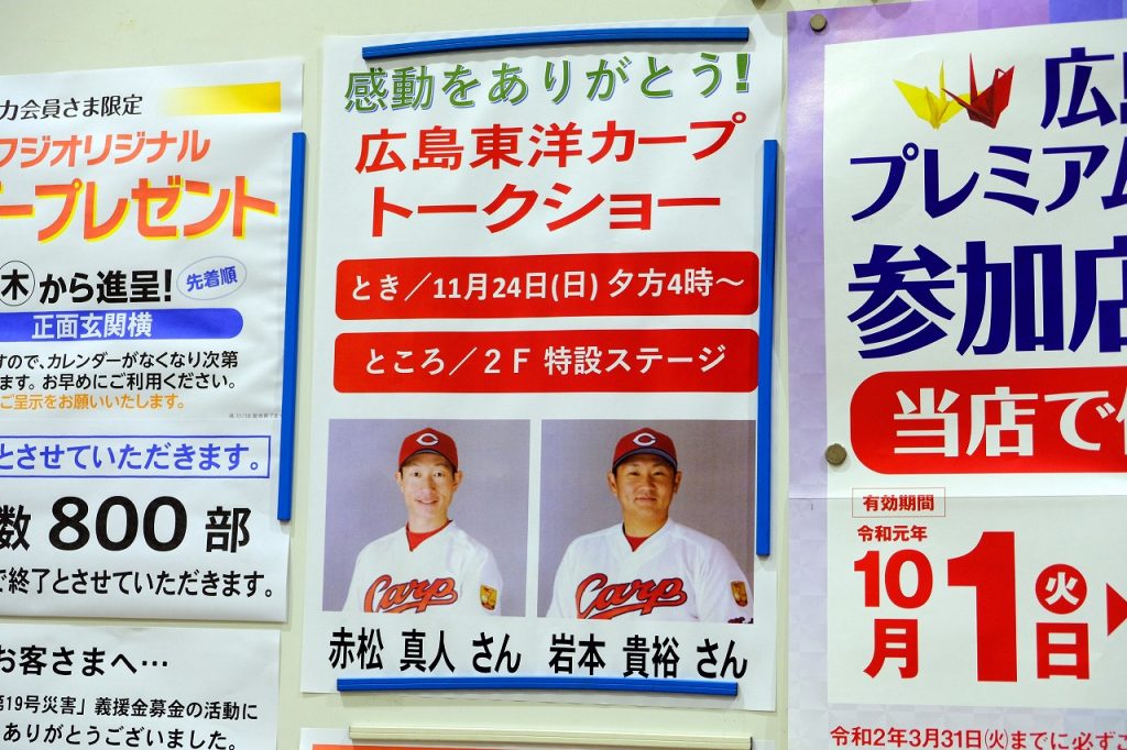今週末の11/24(日)にフジグラン広島で赤松さん、岩本さん出演「カープトークショー」開催!