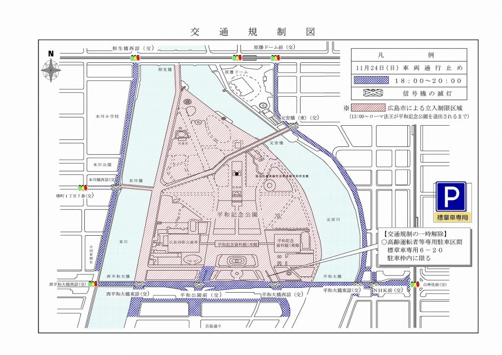 11/24(日)にローマ法王が広島を訪問されます!当日は交通規制に注意、4施設も閉館時間が変更