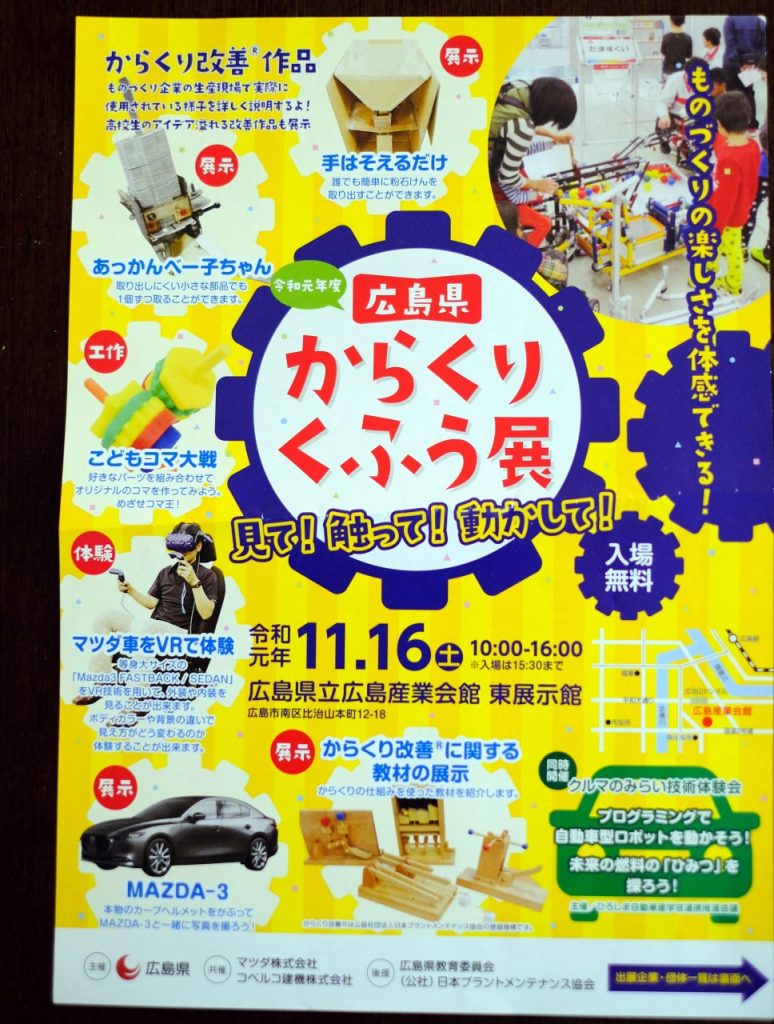 今週末の11月16日(土)に、広島県立広島産業会館で「広島県からくりくふう展」が開催されます。県内にある自動車関連の企業等では「からくり改善」と呼ばれる「お金を…