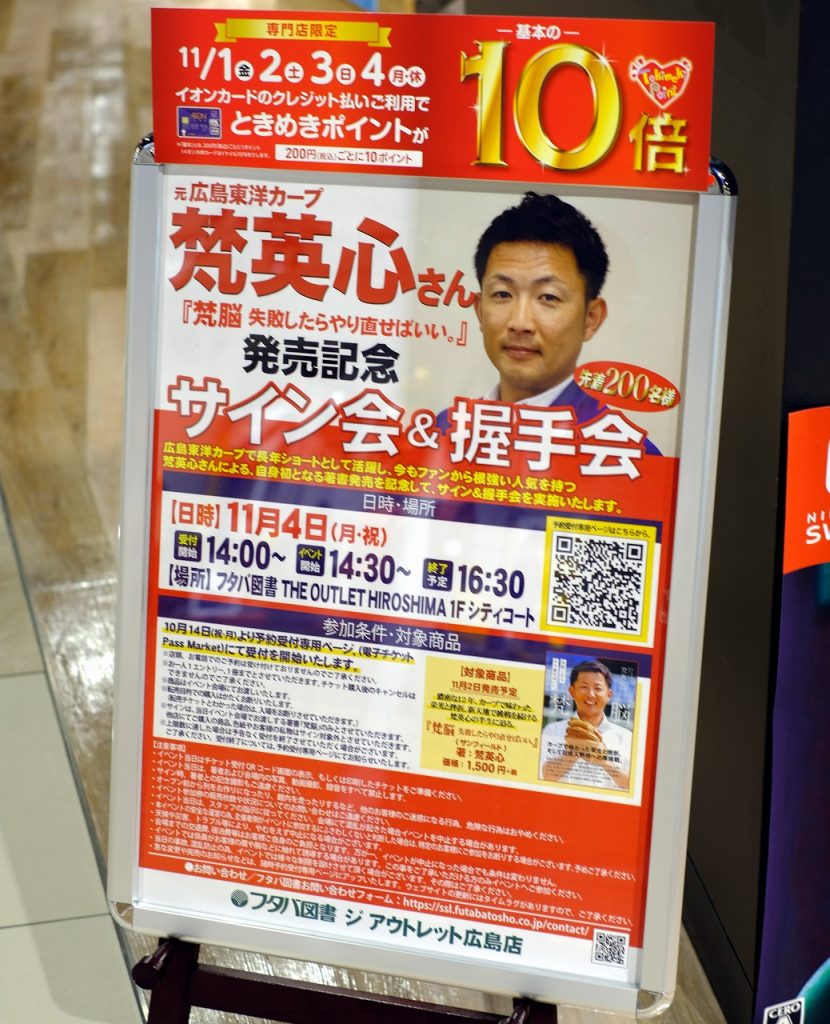 11/4(月・休)にジ・アウトレット広島で梵英心さんの「サイン会&握手会」開催!先着200名限定