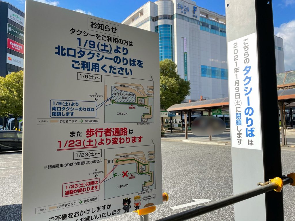 広島駅の駅ビル建て替え工事が本格化しています。2021年1月9日(土)からは、南口のタクシー乗り場が使えなくなるそうです。 タクシーを利用される場合は北口のタク…