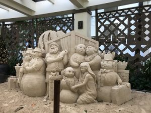 反射タスキのように、光を来た方向にそのまま反射するようですね。プロジェクターの投影角度で見るのが一番明るくなります。電気を消してみると、プロジェクターにその光が返ってくるのが良く分かります。