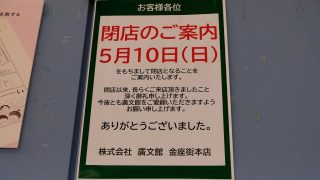 中区本通りにある「廣文館 金座街本店」が5/10(日)で閉店!