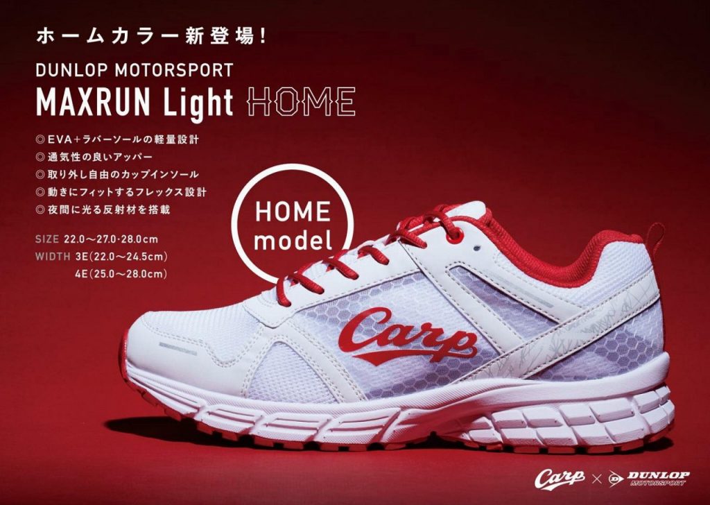 広島県福山市に本社のある広島化成から、カープとダンロップモータースポーツのコラボ商品、スニーカー「ダンロップモータースポーツマックスランライトカープモデル01」…