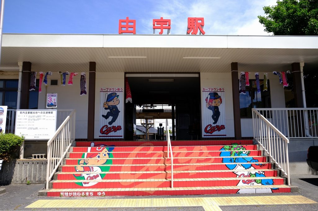 カープ二軍の本拠地がある、真っ赤に染まる由宇駅!「誰がやる?You(由宇)がやる」