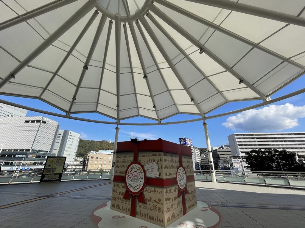 広島駅北口で「エキキタ・ドリミネーション」実施中!ペデストリアンデッキには巨大な箱が設置