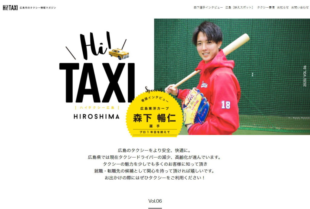 タクシー情報誌「Hi!TAXI広島」!第6弾はWeb限定公開で表紙&インタビューはカープ森下投手