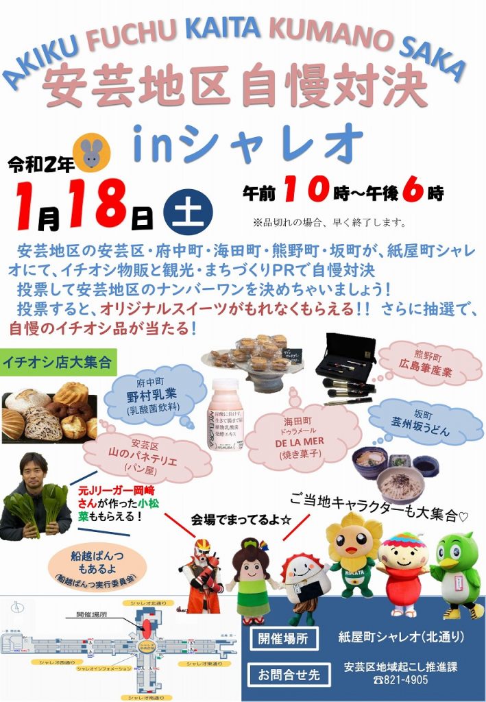 「安芸地区自慢対決 in シャレオ」本日1/18(土)開催!ゆるキャラ達もやってきます