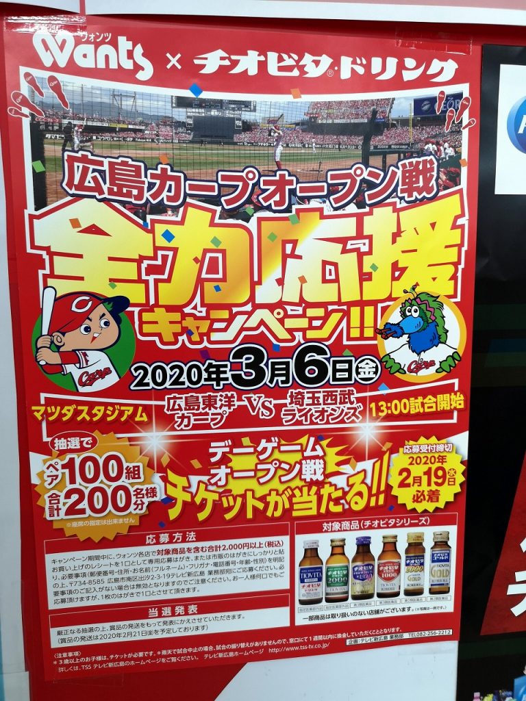 カープオープン戦ペアチケット!ウォンツとチオビタドリンクによる全力応援キャンペーン実施中
