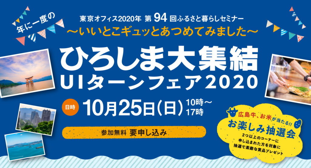 東京、有楽町にある「東京交通会館 12階カトレアサロンA」で、10月25日(日)に、今年も「ひろしま大集結UIターンフェア2020」が開催されます。オンラインで…