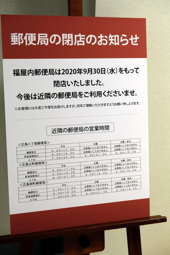 福屋八丁堀本店の中にあった「広島福屋内郵便局」が9/30(水)で閉店しました