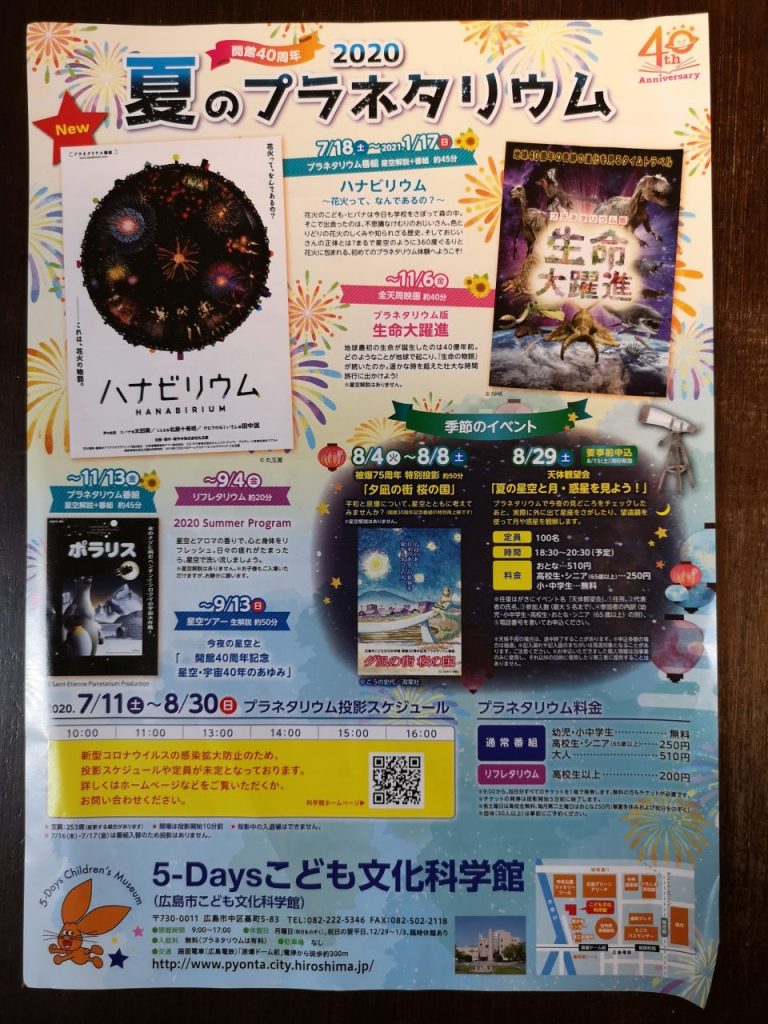 新型コロナウイルスの影響で夏の花火等、多数のイベントが中止となっていますが、そんな中、「5-Daysこども文化科学館」(広島市こども文化科学館)で夏のプラネタリ…