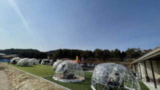 開放的な広場でドーム型テントに入ってまったり過ごせる「八天堂ヴィレッジ」