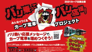 広島電鉄で3月1日から、カープへの応援メッセージを募集し、集まったメッセージの一部をカープ電車内に掲出する「バリ乗って!バリ応援!みんなでつくるカープ電車プロジ … 続きを読む 「バリ乗って!バリ応援!みんなでつくるカープ電車プロジェクト」実施!カープチケットも当たる