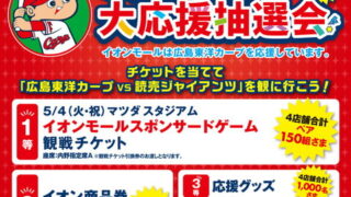 イオンモールでカープ戦チケット等が当たる「広島東洋カープ大応援抽選会」実施中!