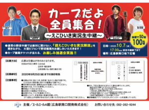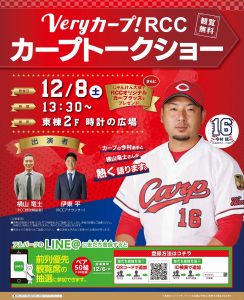 12月19日(日)に広島駅南口地下広場で『広島FM「アラウンドカープX」公開録音 in エールエール!カープ選手とリモートバトル!』が開催されます。こちらでは、カープ森浦大輔投手と大盛穂選手がリモート出演されるとのこと。大型ビジョンに映し出される2人と、 会場のお客さんとが闘える「リモートバトル」が開催されるそうです!