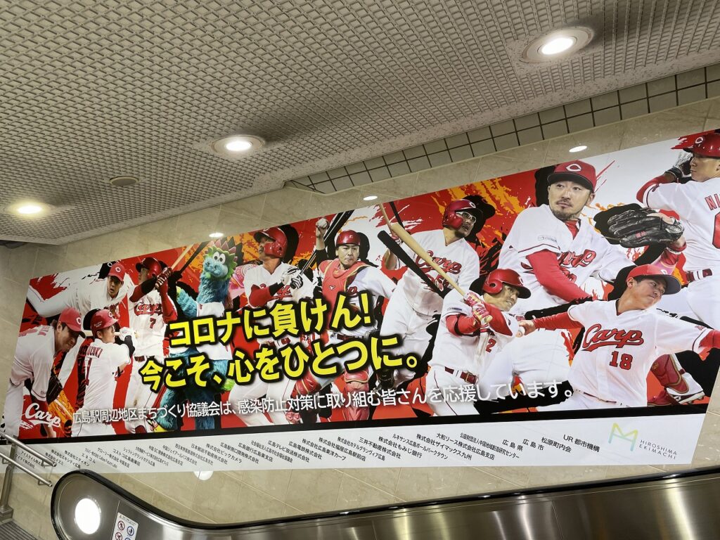 広島駅の工事は着々と進行中!南口地下通路へ下りる階段には応援メッセージが