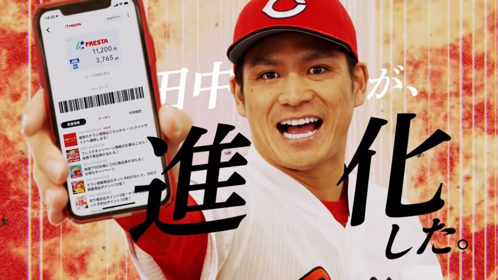 田中広輔選手が出演するフレスタの新CMが公開されています!