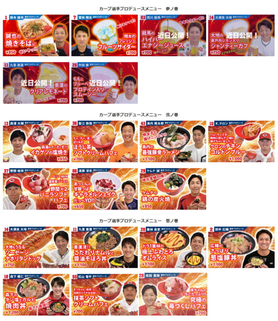 マツダスタジアムの選手プロデュースメニュー、2021年シーズン第3弾が公表!