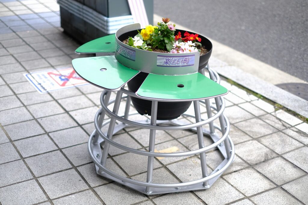 広島市の中央通りに椅子付きのフラワーポットが設置されています!