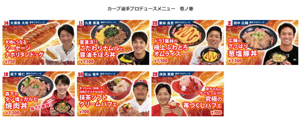 マツダスタジアムの選手プロデュースメニュー、2021年シーズン第1弾が公表!