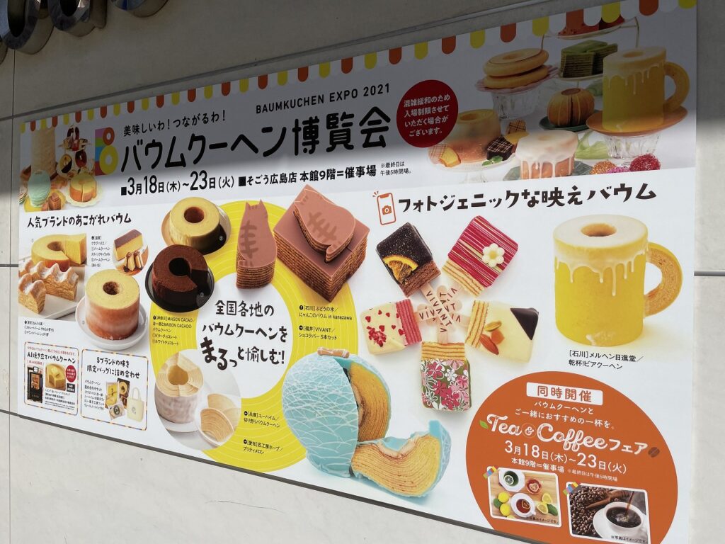 そごう広島店の本館9階で、昨日3月18日(木)からお馴染みの「バウムクーヘン博覧会」が開催されています。47都道府県のバウムクーヘンが大集合するこちらのイベント…