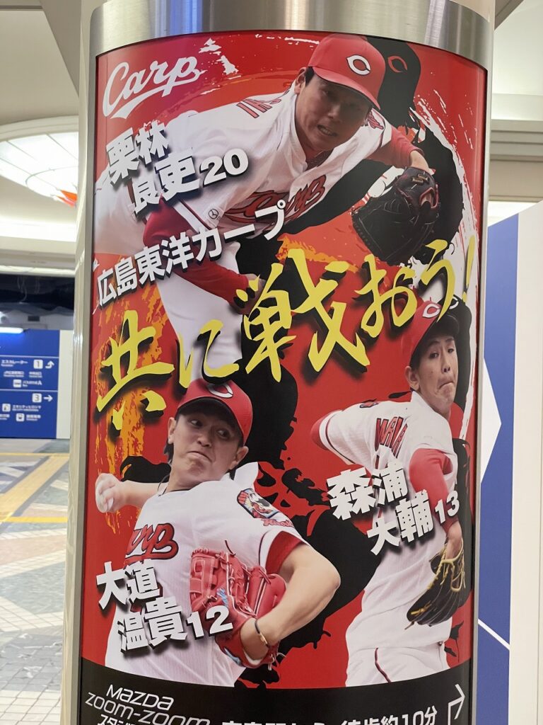 以前も紹介したようにカープロードの選手紹介パネルが2021年バージョンに更新されていますが、同様に、合間にあるJRの広告も今シーズン仕様に変更されていました!カ…