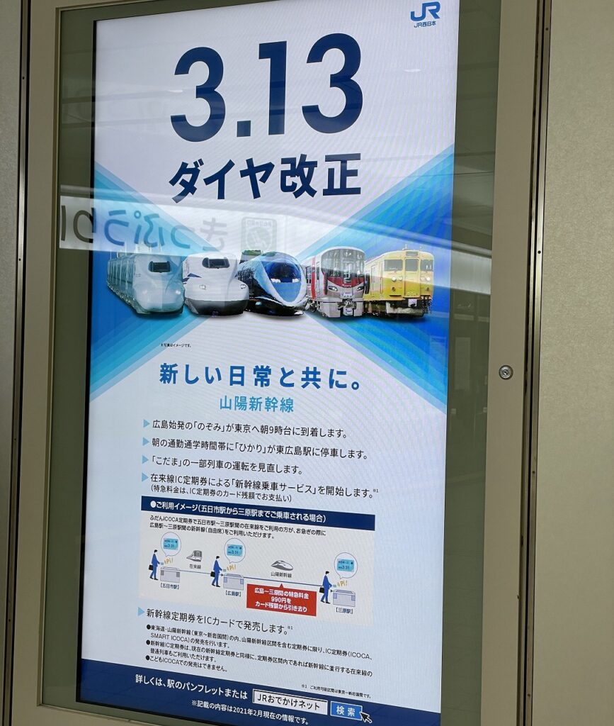先日から案内されていましたが、JR各社で明日3月13日(土)、2021年春のダイヤ改正が行われます。 おもなところで言えば、山陽新幹線は広島から東京への「のぞみ…