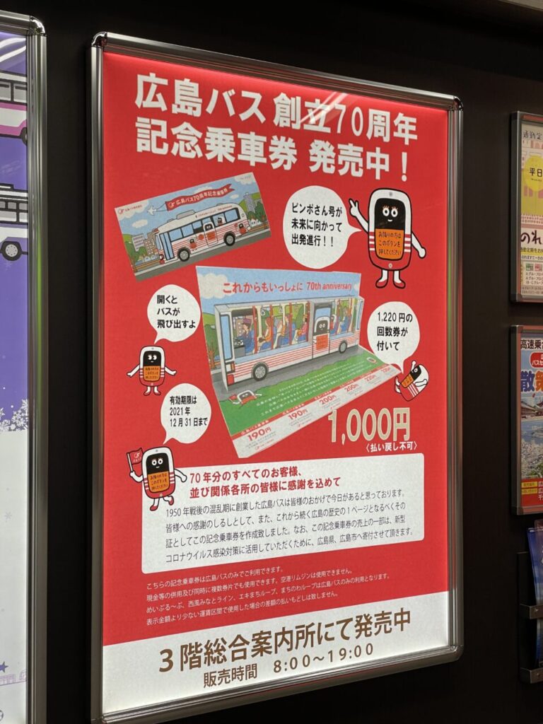 「広島バス創立70周年記念乗車券」が登場!1,220円分の回数券が付いて1,000円
