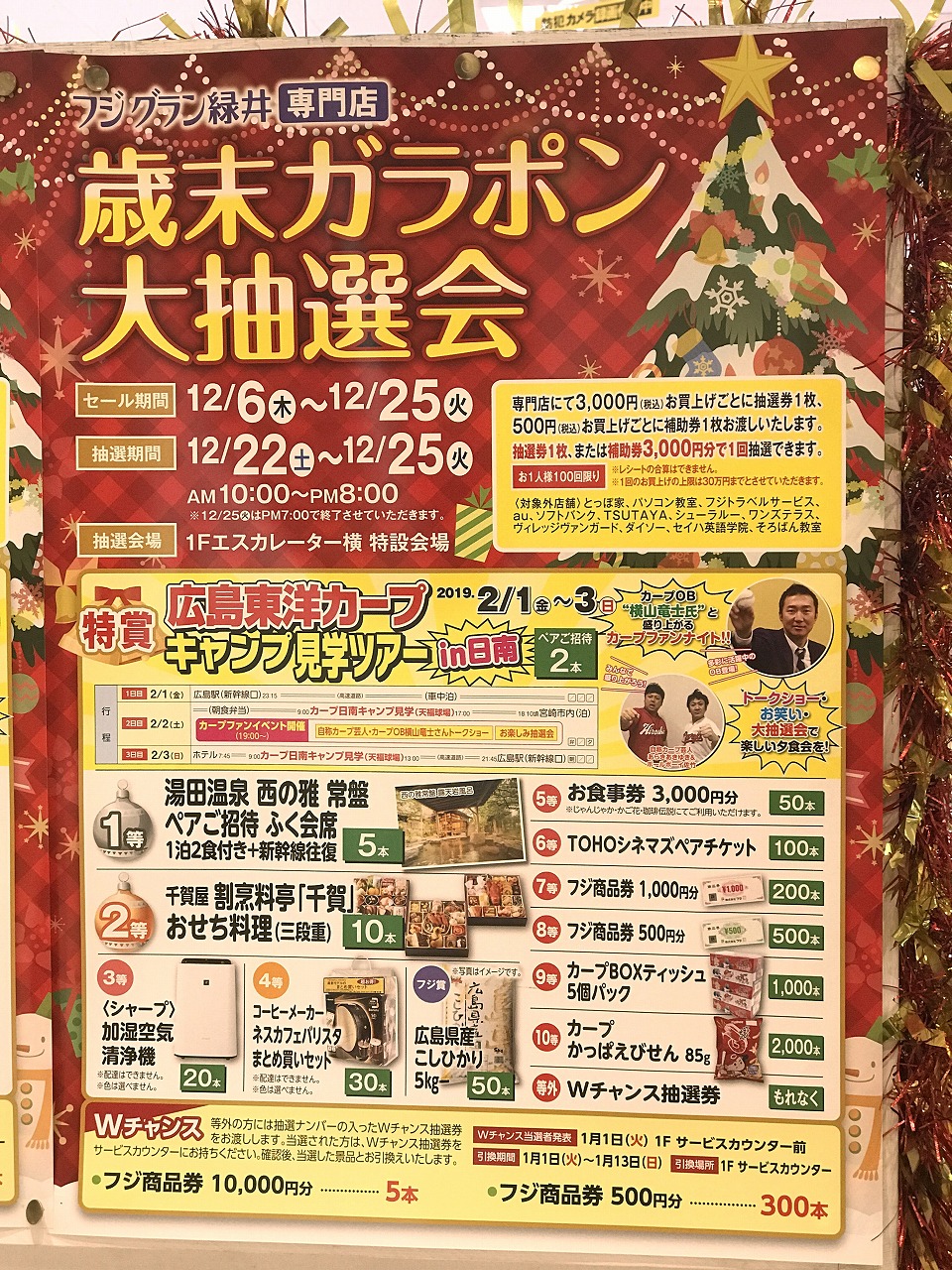カープ歴代OBが実際に使用された野球用具や今年3月に開催された「カープ レジェンド ゲーム」当日の写真展示も行われています。イベントは12月27日(火)まで。9階カープグッズ売場で開催されています。
