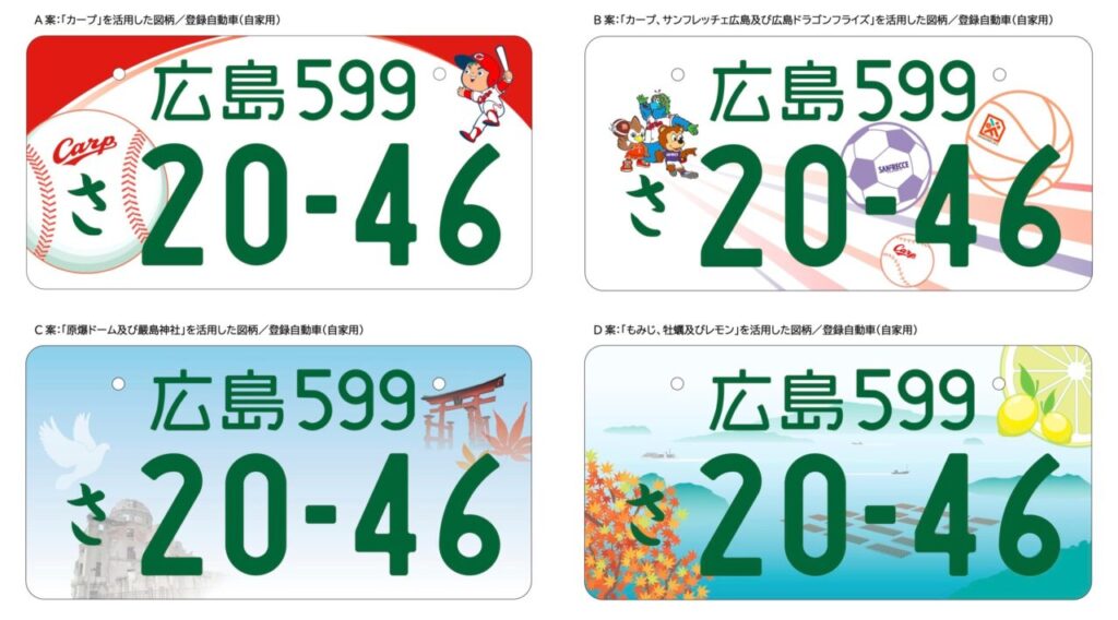 カープやサンフレッチェ、厳島神社などのナンバープレートを!4案の中からアンケートで決定