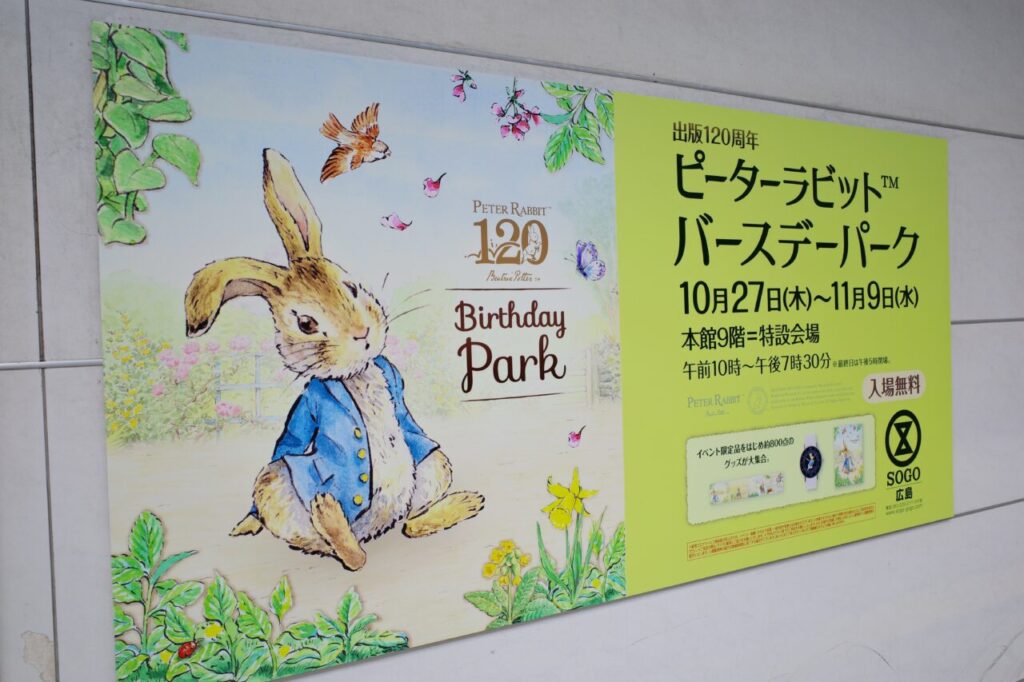 ピーターラビットの出版120周年をお祝いしたバースデーイベント「ピーターラビット バースデーパーク」がそごう広島店で開かれていますね。こちらは中四国初開催だそう…